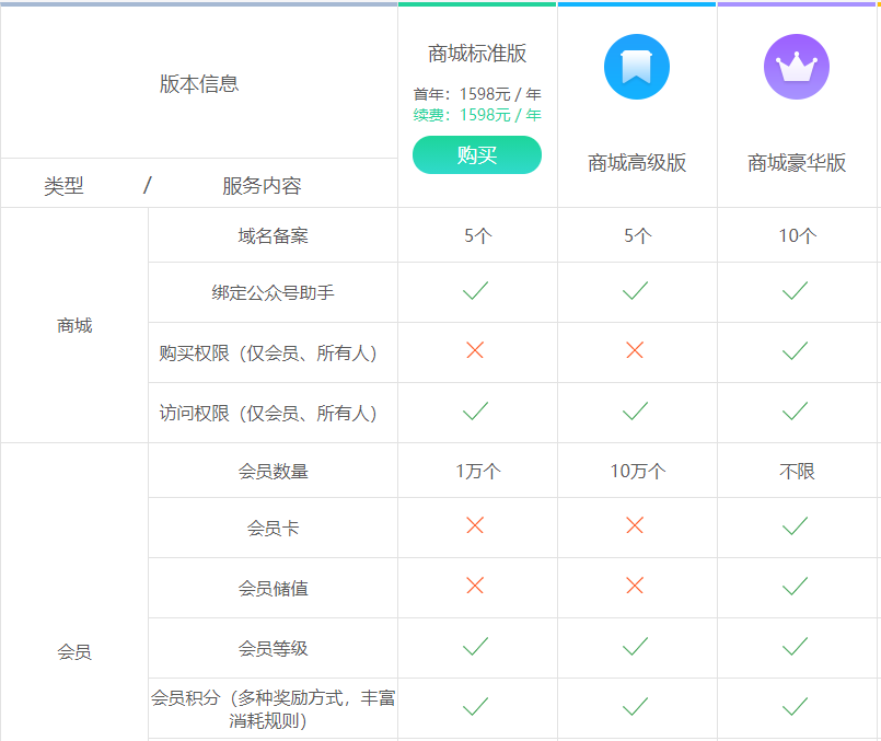 商城交易型小程序——开通【商城】权限 —价格:1598-3298元一年。
