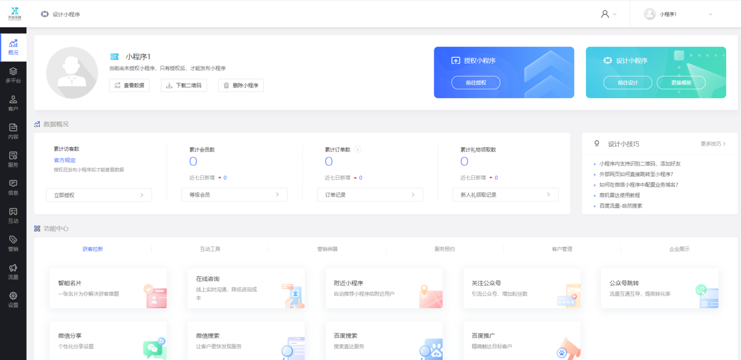 六、完成的小程序页面的设计后,我们可以进入到后台,对小程序的各个功能,进行进一步的设置。